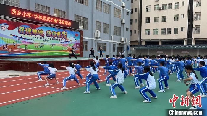 深圳市寶安區(qū)西鄉(xiāng)小學的學生們在練習華林派武術(shù)操 西鄉(xiāng)小學 供圖