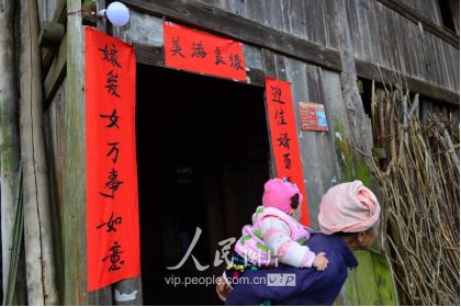 11月17日,新娘潘芝銀家門前張貼的結婚喜聯。