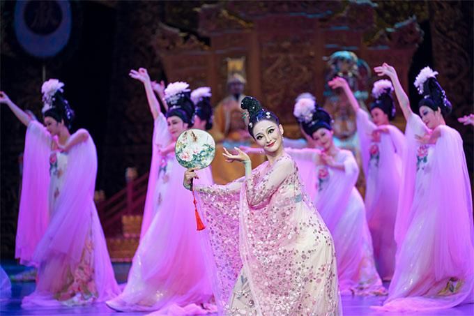 舞劇《傳絲公主》以蠶絲為戲劇元素,以蠶桑女寧兒與于闐王子尉遲的愛情為外在線索,以盛唐時中原與西域的交流往來為隱伏線索,將凄美的愛情故事與壯闊的家國情懷交織在一起,引領觀眾穿越到大唐盛世,感受繁興的絲路文化和豐富多彩的民族風情。