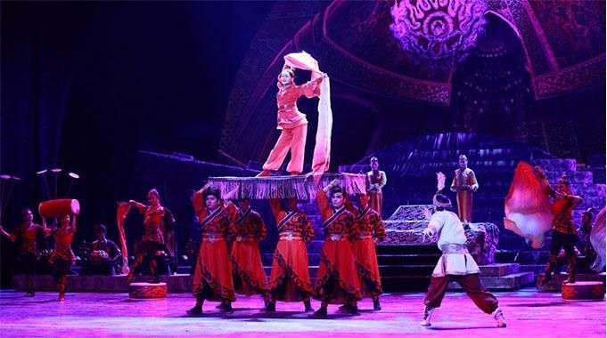 在《樓蘭尋夢》中,既有羅馬商人、波斯商人,也有西域少數民族和漢族;既可以看到阿拉伯舞蹈,也可以看到漢族的扇子舞、綢子舞。雜技劇展現出多民族文化的交匯融合,是中華文化兼容并蓄的生動體現。