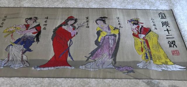 取材于曹雪芹名著《紅樓夢》之《金陵十二釵總冊》。通過二重經、七重緯和豐富的色彩應用,使畫面織紋細膩、光澤柔和、雋秀高雅,是一款難得的饋贈佳品和收藏品。