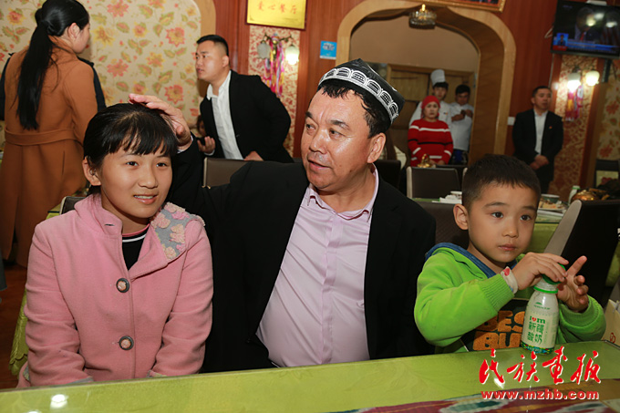 來,給我們拍一張照片,這些都是我的孩子。”2017年 11月8日下午,“貫徹落實十九大精神 民族團結中原行”主題采訪團走進鄭州市二七區,新疆美食城時,頭戴小花帽的美食城的老板阿地力·買買提摟著兩個小孩子,讓記者拍照。