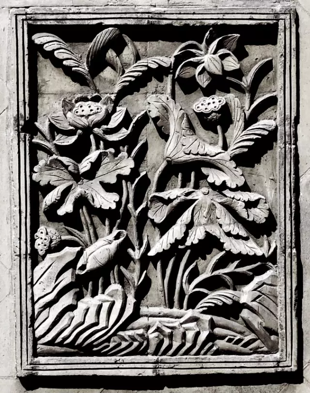 清代,北京紫禁城宮廷內墻面夾柱的通氣孔也都使用磚雕,鏤雕花鳥圖案,牢固磚雕 而美觀,且利于空氣流通。
