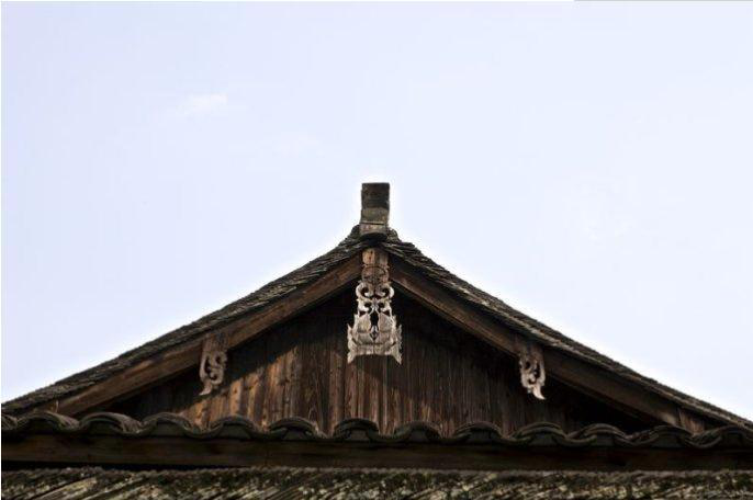 隨著時間流轉,懸魚在匠人時代里閃轉騰挪,歷經了由簡到繁的造型征途,也從功能構件升華為裝飾構件。同舊時的其他建筑構件一樣,懸魚在實際功用與藝術創造間轉徙。因此,它最先考慮了對木結構的保護,之后才生出裝飾作用等枝蔓。懸魚覆蓋在博風板合角處的罅隙位置,不僅保護了合角處不受雨雪侵襲,同時可以美化接縫。懸掛后,也從結構上起到了穩定博風板的作用,同時還庇護了檁條端頭,有效地防止了木制建筑過早斑駁。時至今日,懸魚已然成為傳統建筑中結構性與裝飾性完美融合的一種構件,更是祖先智慧的一種體現。