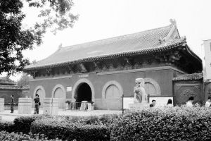 梁思成后來寫道:“那高大的殿門頓時就給我們打開了。里面寬有七跨,在昏暗中顯得更加輝煌無比。在一個很大的平臺上,有一尊菩薩的坐像。它的侍者們環它而立,有如一座仙林。”憑著學識和經驗,梁思成斷定佛光寺大雄寶殿是唐代建筑。經過他們的艱苦勘察考據,發現殿內梁架上的題記和殿前石幢上的文字都表明這座大殿建于公元9世紀,終于證實,這是一座唐代建筑確鑿無疑,并命名為東大殿。