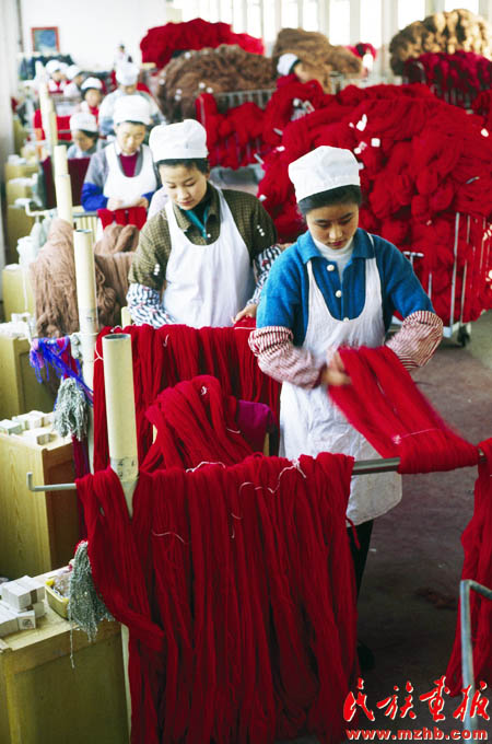 20世紀90年代初期,一些經濟學家把戰略眼光投向資源豐厚的西部地區,以促進中西部省區經濟協作為目的的隴海蘭新經濟帶悄然成型,并輻射至西亞和歐洲。圖為跨入全國800家最大工業企業行列的甘肅省天水市甘肅絨線廠?!睹褡瀹媹蟆?994年第4期