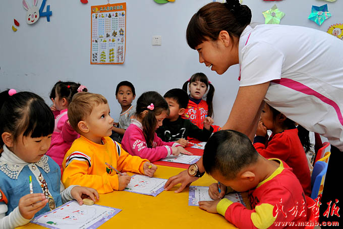 共建“一帶一路”是以習近平同志為核心的黨中央著眼于我國改革開放和長遠發展提出的重大國際合作倡議。隨著邊境往來不斷密切,周邊國家越來越多的人選擇到中國來學習文化,客觀上增進了感情。圖為2017年俄羅斯的小朋友在吉林琿春學習中國文化?!睹褡瀹媹蟆?017年第4期