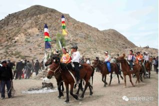 牧民攜家人一起轉敖包祭拜