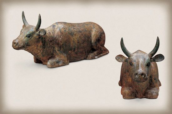 青銅鑄造,中空,外表通體鎏金。牛屈肢而臥,雙眸遠眺,四肢有力,體態健壯,比例勻稱,線條流暢,造型形象逼真,個體碩大。該銅牛制作時需要將冶煉、模具雕塑、澆鑄、拋光和鎏金等工藝集于一體,真實地反映出西夏青銅鑄造工藝的高超水平,是西夏金屬工藝品的杰出代表。