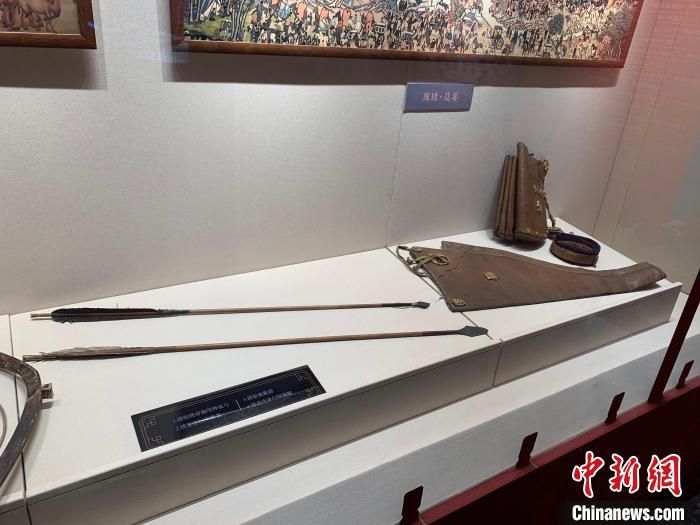 本次展覽將皇帝東巡期間所做的四項主要活動內容向觀眾做以介紹,它們是“習武展雄風”“暢飲一家親”“祭陵敬先祖”“百禮在皇宮”。其中,“習武展雄風”這部分展出了“清皇帝行圍鈚箭”“清嘉慶帝行圍櫜鞬”“清弘歷御用樺皮弓”“清射鹿鈚箭”等文物。據介紹,清帝東巡出山海關到東北地區,所經路途山林茂密,大型猛獸居多,正是實地演練的最佳時機。