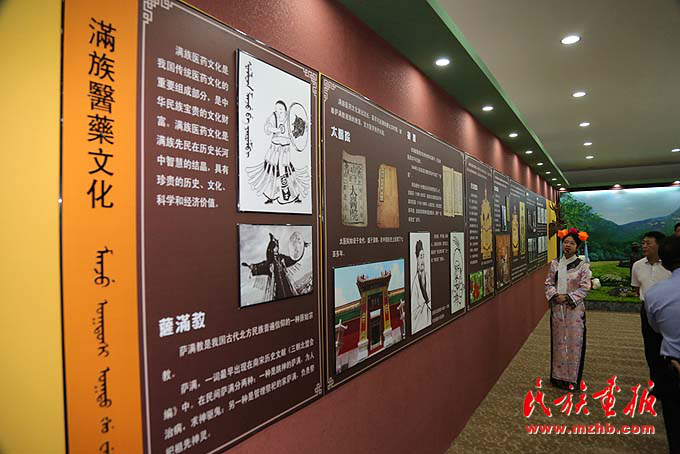 滿族講解員在滿族醫藥博物館講解滿族醫藥歷史
