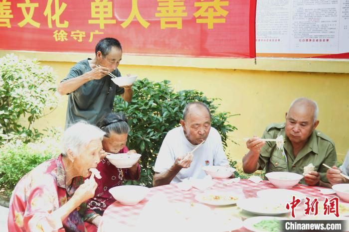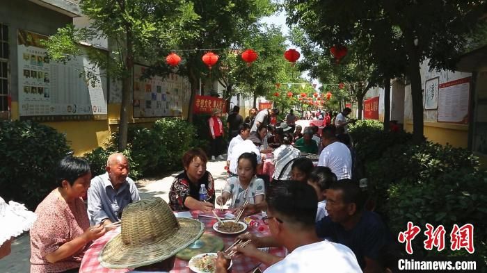 “孝善羊湯宴”將伏羊節(jié)推向高潮,當(dāng)?shù)卮迩f免費(fèi)請“孝善人家”代表等“喝伏羊”。 付宏 攝