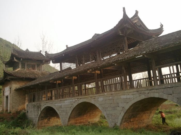 瑤族風雨橋,又被稱之為“涼橋”或“風水橋”。除木橋外,大多是在石拱橋上加蓋橋廊、橋亭和在橋頭的橋臺上建閣樓,穿斗式木構架,二層檐或三層檐,有的四層檐,通高在9米~10米間。風雨橋不僅是路人避雨之處,也是瑤族男女青年談情說愛的約會場所。廣西瑤族風雨橋主要集中在富川瑤族自治縣和恭城瑤族自治縣。富川縣保存至今的古代瑤族風雨橋有18座,其中著名的有迥瀾橋(建于明萬歷年間),青龍橋(與前者同時期修建),以及福壽橋、高橋、鳳溪新橋、皇侯泉橋、東轅橋、鸕鶿塘瀾通橋、龍歸橋、興隆橋等。
