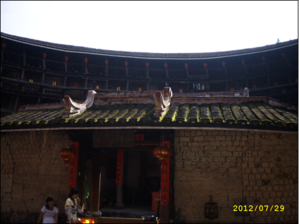土樓和長城差不多,是用糯米、石灰、蛋清和泥土混合而成的外墻,內部是用黃木和杉木,夏可抵暑氣,冬可抵冽風,還可自動調節室內的溫度。