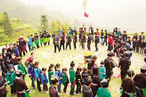 苗族在歷史上曾經一次次崛起、一次次戰敗、一次次開辟、一次次丟失。在長期的遷徙中,他們不但丟失了土地,丟失了家園,還丟失了文字。似乎八寨苗這一支丟失得更多——他們連節日都丟失了。一直以來,上馬路的苗族村民沒有自己的節日,一年一度的“瓜節”還是祖先用水牛與水族同胞換來過的。