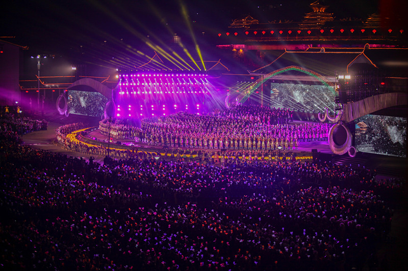 2017年12月18日,中國侗年暨第八屆侗文化旅游節在貴州省黎平縣開幕,萬人同唱侗族大歌 (瞿宏倫 / 攝)