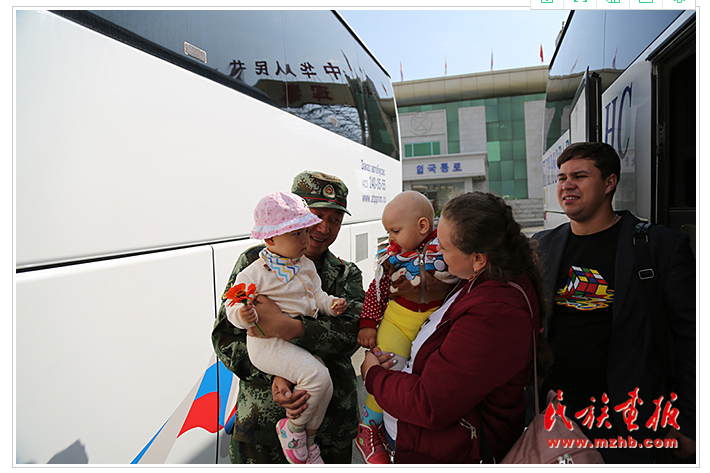 第一次來琿春旅游的俄羅斯游客亞娜帶著她1歲的寶寶剛入境,恰巧遇到帶孩子出來的中國邊防戰士,他們便打起了招呼
