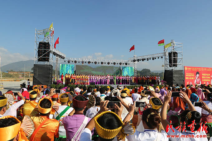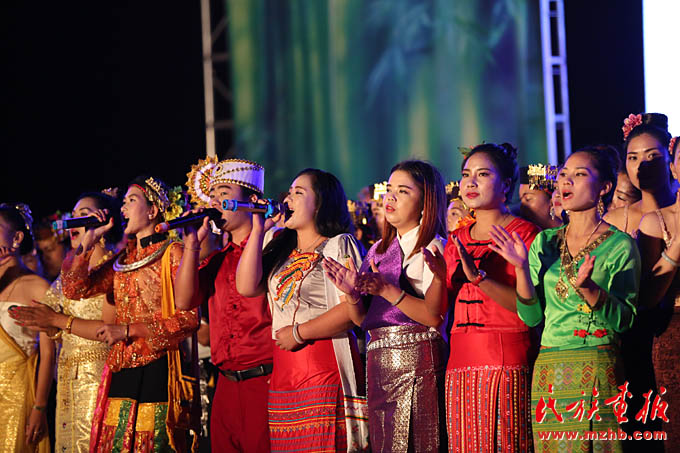 18日晚,盈江縣委副書記、縣長巖補宣布傣歷新年慶典活動正式開幕
