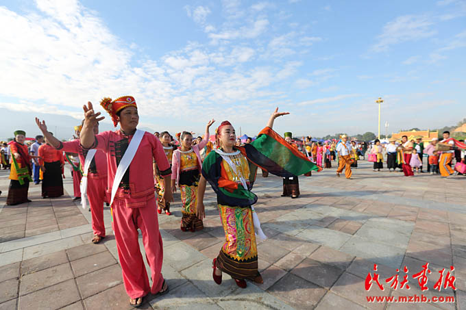 廣場上,來自瑞麗市、隴川縣的傣族演員跳起了噶秧舞。來自瑞麗市民間傣協會的巖保告訴記者,每年的新年慶典活動德宏州各個縣市的民間傣協會都會互相往來。在傣歷新年,傣族群眾要用“趕擺”的方式慶祝新年的到來,并相互致以對新一年美好生活的祝愿。