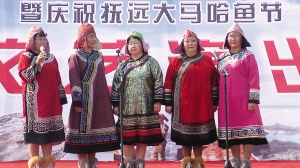 “那乃”,俄羅斯人稱“納尼”,由于歷史的原因,這部分赫哲人今天生活在哈巴羅夫斯克,那兒專門有一個“納尼區”。當地的赫哲人專門成立了一個“納尼劇團”。今年,他們特意從俄羅斯趕來,參加首屆大馬哈漁獵文化節,他們帶來具有濃郁赫哲族文化情懷的節目,如合唱《那乃故鄉》《我們返回自己的岸邊》等。而且,團長別里特告訴我們,他的這個姓氏在今天的“納尼區”是個大姓,這也是從前赫哲人的大姓,相當于今天中國赫哲族的“尤”姓、“吳”姓等。為了到撫遠參加此次活動,他特意親手制作了一把小提琴和一個口弦琴,還精心制作了古那乃人的服飾——深綠色的半長大袍子、戴帽耳的那乃帽、極具古赫哲人特色的鞋子。他們站在風中,帽耳不斷上下翻動的情景,似乎讓人看到了遠古時期的江風吹打著他們的樣子。這是一個經受了苦難的有情意的民族啊!
