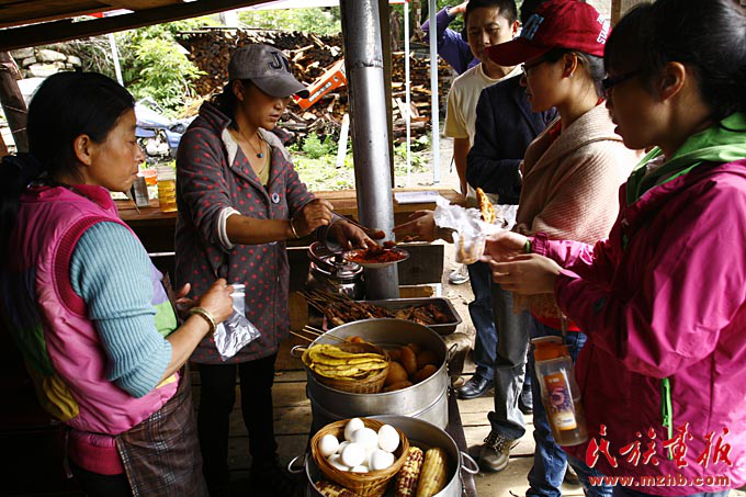 珞巴族農家樂小吃攤也吸引了許多游客(列來拉杜 攝影)