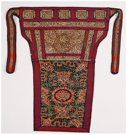 正因馬尾繡的工藝獨特,蘊含著豐富的文化內(nèi)涵,2006年水族馬尾繡入選第一批國家級非物質(zhì)文化遺產(chǎn)名錄。而馬尾繡背兒帶更是將水族馬尾繡的藝術(shù)價值體現(xiàn)得淋漓盡致。民族文化宮博物館所藏的這件馬尾繡背兒帶,刺繡精美,展現(xiàn)了水族婦女嫻熟的刺繡技藝,是研究水族民俗、民風(fēng)、圖騰崇拜等民族文化的珍貴藝術(shù)資料。