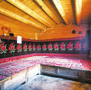 土房的室內除有的搭火炕外,其它的裝飾和木房的一樣。到了采收紅花的季節,鮮紅欲滴的紅花曬滿了院子,形成獨特的風景。不論哪個房間,都可作為臥室,也用于待客,廚房和儲藏室單建,有的還單建馕坑。