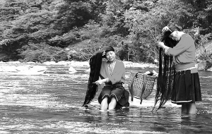 盡管紅瑤婦女的頭發很長,但仍然烏黑發亮,就連80歲的阿婆頭上也少有白發,很少開叉。秘訣在哪兒?村里的村民告訴我,紅瑤的每家每戶火塘旁都會有一個陶罐,里面裝的是紅瑤婦女們貯存起來的淘米水。經過火塘的烘烤加熱和發酵,淘米水就成了紅瑤女子們獨特的護發秘方。她們每隔幾天梳洗一番,每次梳洗,首先把長發浸泡在“淘米水”中充分吸收營養,再用山泉水洗凈,然后梳理晾干。這些秘制的“淘米水”就成了紅瑤婦女們的“高級洗發水”。每個瑤寨周圍幾處清澈的山泉,便成了她們天然的“梳妝臺”。