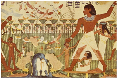 這是一門男人的手藝,父系相傳。在堅硬的牛骨上,起刀、轉承、刻下,再施以黑色染料(少許有彩色,但以黑色居多),骨簪通體扁平,紋飾繁復卻極有空間和秩序感。人形骨簪有單人頭和雙人頭兩種。骨簪分頂部、中部、尾部三個部分。頂部為黎族傳說中峒主(也被稱為“總管三”的部落首領)的尖頂高帽,中部為其側面像。根據黎族傳說,該首領是民族英雄,象征著祖先的文治武功。有趣的是,這一人像的刻畫,與古埃及壁畫人物造型的“正面律”如出一轍,即人面部的扭曲:眼睛正面,臉卻是側面。這一特征,一定程度上體現了古埃及人的生死觀,靈魂不滅,人能復活,而復活要憑借維持完好的軀體,因此在透視畫法沒有發明出來之前,人的五官是要盡可能的呈現,尤其是最重要的雙眼。