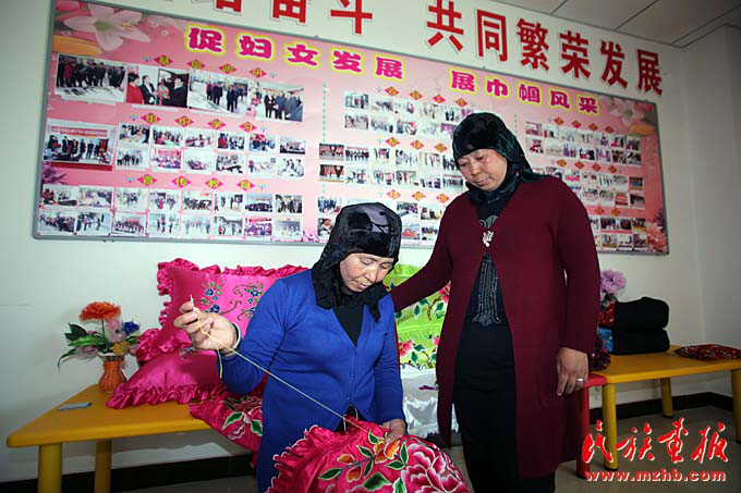 東鄉縣婦聯開展的手工編織技能培訓使更多東鄉族婦女利用刺繡等一技之長增加了家庭收入(胡發偉 攝影)