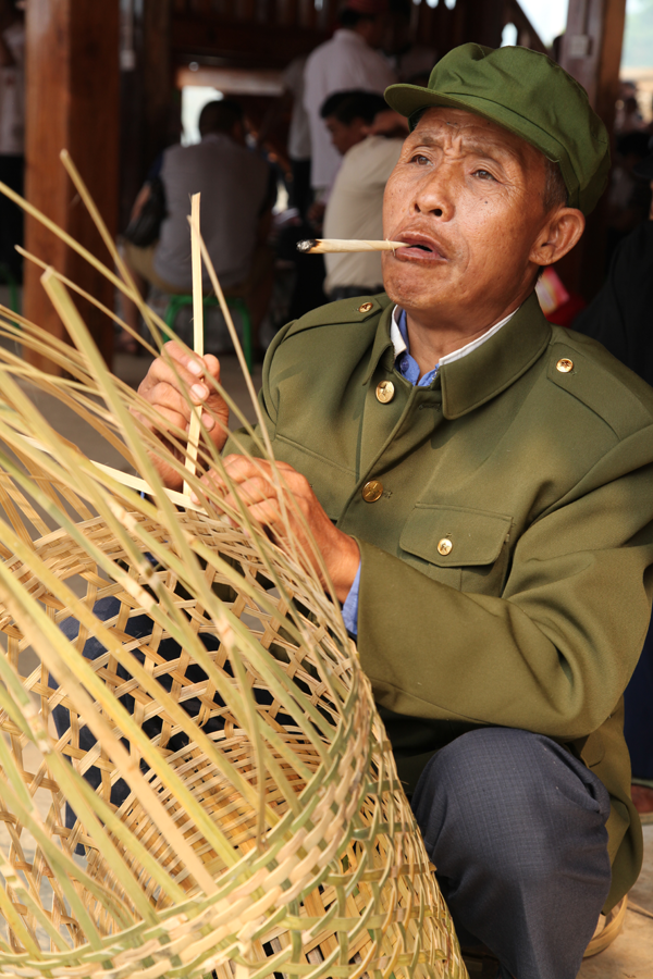 (1)竹編。布朗族居住地盛產竹子和藤篾,家庭用具、生產工具多偏愛竹制品。每一個布朗族成年男子都會編織各種竹器,如篾籮、飯盒、簸箕、篾席、背簍、篾桌、針線盒等。這些手工藝品多數自用,剩余的拿到壩區市場進行交換。也有少數人以編制竹器為生。布朗族男女都會編制蓋房用的草排。