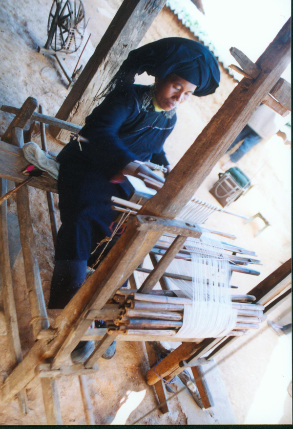 (2)紡織。布朗族婦女善于紡織,多在閑暇時間進行。紡織原料有棉花、苧麻和葛線麻等數種,以紡織棉布為主。這些布用來縫制上衣、筒裙、背帶、布袋、裹腳布等。紡織品種有斜紋布、平布和彩錦。布的質地厚實耐穿,深受本族人喜愛。有的地區,人們多半使用水平織機,紡織技術更進了一步。近十年來,由于價廉物美、品種齊全的化纖紡織品大量銷售,傳統的紡織技術受到了沖擊,一些布朗族婦女已經不紡紗織布。