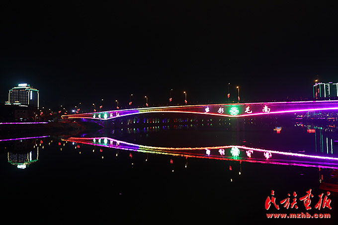 11月9日通車的環江三橋不僅便利了交通,橋上的霓虹燈把夜色中的毛南山鄉裝點地非常美麗