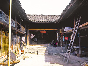 梁河縣九保鄉(xiāng)的阿昌族民居也為三合院,正房的堂屋大都是敞開式,裝飾簡(jiǎn)單,左右?guī)烤o湊,院落很小。兩側(cè)廂房樓下,一邊是廚房,一邊是豬圈、牛欄;樓上,一邊是未婚子女的臥室,一邊存放糧食、雜物。
