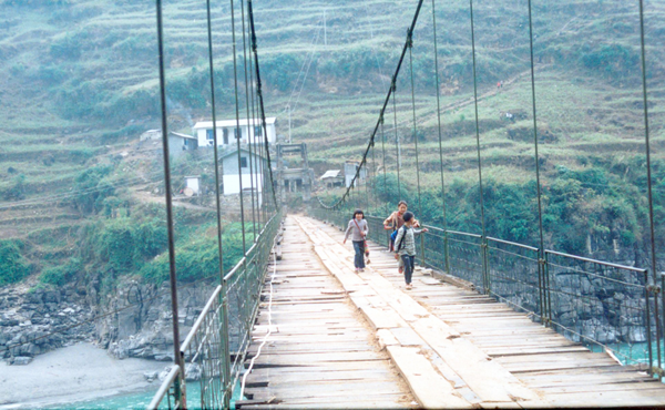 怒江大峽谷及其兩岸的碧羅雪山和高黎貢山層巒疊嶂,危巖聳立,懸崖陡峭。谷中水流湍急,洶涌澎湃。自古以來,這里的交通就十分不便,正所謂“巖羊無路走,猴子也發愁”。整個怒江只有幾處水勢稍緩的渡口可以用木船擺渡,除此而外,其它地方既無法架橋,又不能涉渡。兩岸的怒族人民只有依靠溜索這種古老的渡江工具往來飛渡,保持著彼此間的交往與聯系。