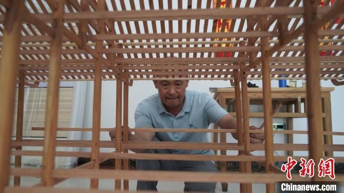 劉安喜制作吊腳樓模型 張寶訓 攝