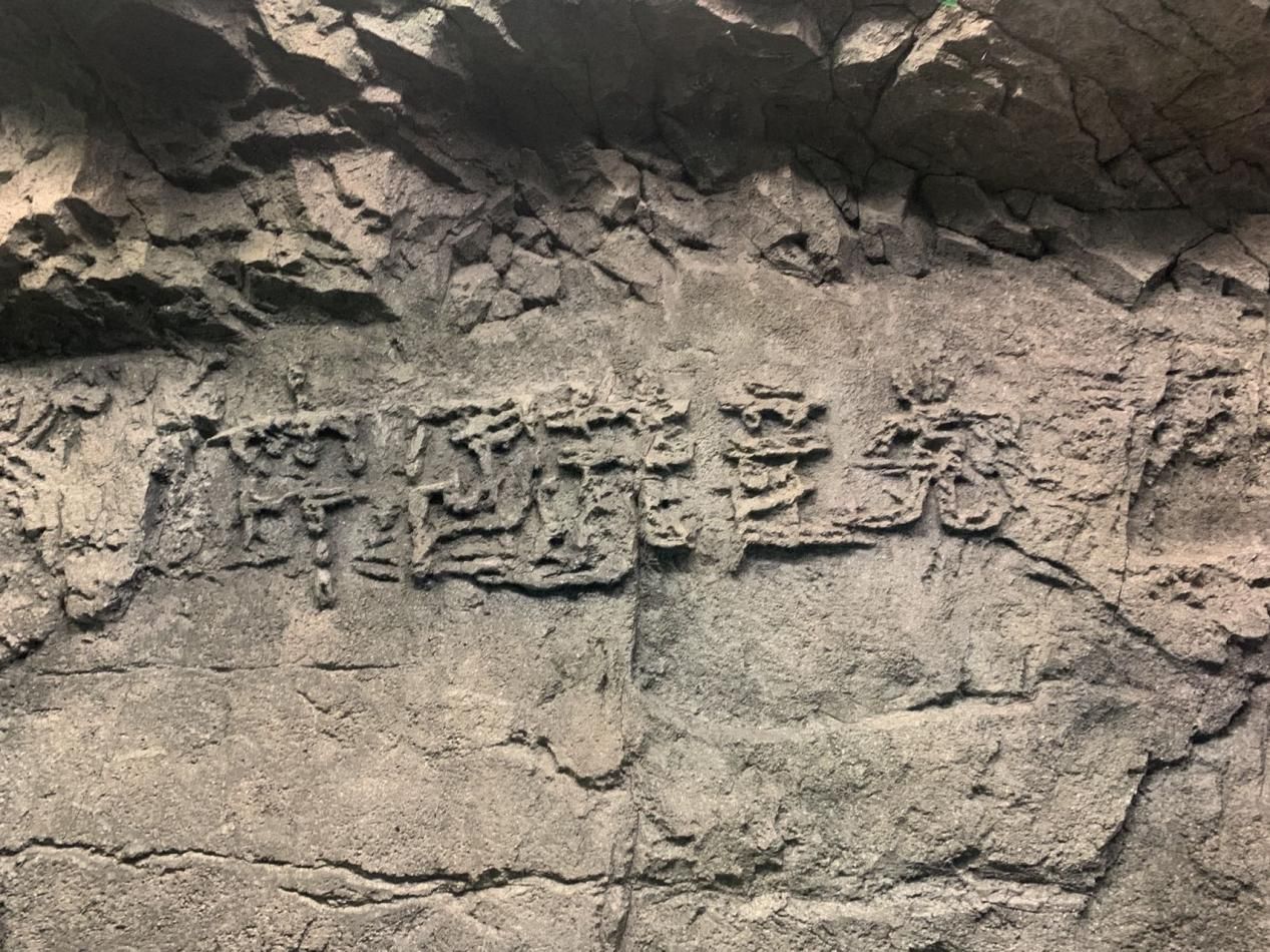 藏字石(場景復(fù)原):位于貴州平塘國家地質(zhì)公園,山頂墜落的一塊巨石斷面上,凸顯出一排很像“中國共產(chǎn)黨”這五個(gè)漢字的圖案,這是古生物化石經(jīng)過溶蝕及差異風(fēng)化作用而形成