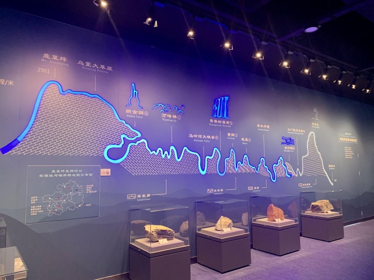 “多彩貴州”展廳以“喀斯特王國”為主題,分為“滄海變遷”“追根溯源”“經(jīng)典地貌”“地質(zhì)旅游”四個(gè)部分,運(yùn)用聲光電、場景復(fù)原、油畫、沙盤等展示手段,再現(xiàn)貴州“喀斯特王國”的各類地質(zhì)景觀,大自然的鬼斧神工。