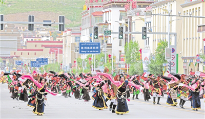 2017年7月24日下午,一場名為“瀟灑的康巴人”玉樹風(fēng)情巡游在玉樹藏族自治州州府玉樹市街頭上演。來自玉樹州一市五縣的康巴藏族兒女或馭駿馬、或盛裝、或歌舞,以行走巡游的方式展示當(dāng)?shù)鬲毦咛厣拿褡迕袼孜幕8骺h巡游隊伍從感恩廣場出發(fā),途徑結(jié)古大道、民主路,最終到達玉樹軍分區(qū),沿途圍滿了觀看的群眾和游客,據(jù)悉,此次巡演在玉樹州尚屬首次。