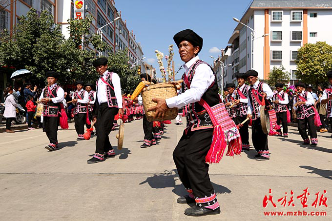 正月初三,鄉鎮拜年隊伍走進縣城(瀾滄縣民宗局供圖)