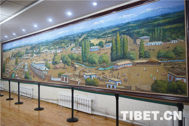最早,維吾爾族群眾從南疆遷居到這里,他們大部分以傳統手工制造業為生,而其中多以鑄鍋為業,因此,當時“喀贊其”是指以鑄鍋為業的人。如今,“喀贊其”不僅僅是個地名,更被作為一個文化概念廣為傳播。圖為再現了喀贊其歷史風貌的巨幅沙粒畫。