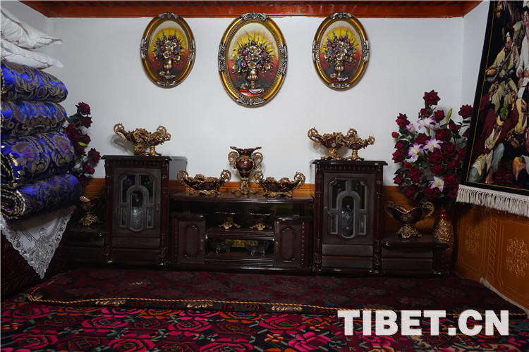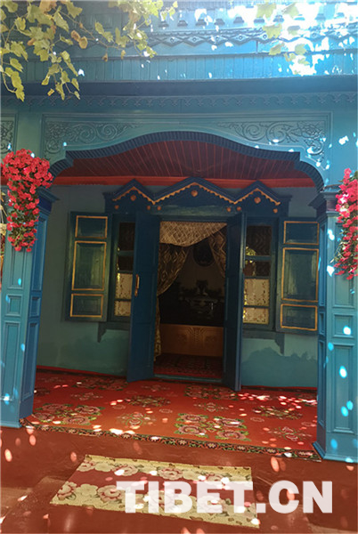 除了古老的純木質結構民宿,喀贊其還有各式磚石結構的民居。院落寬敞明亮、華麗氣派,家家種植著花草、蔬菜,郁郁蔥蔥、生機盎然,葡萄廊架已成為每家的“標配”,葡萄架下是家人休閑、朋友聚會的地方。圖為當地民居院內。
