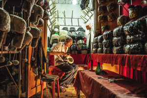 阿布都瓦克·吐爾洪老人,今年63歲,他是阿熱亞路帽子巴扎的手工藝人,店里出售的羊羔皮帽都是他親手制作的。1998年見到他的時候,他的鋪子非常簡陋,街巷四周塵土飛揚(yáng)。在巴扎工作近30年,老人見證了喀什古城的發(fā)展變遷。