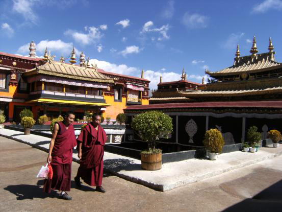 大昭寺位于西藏拉薩市中心。原名惹剎、邏些,后改稱覺康,即“釋迦佛殿”。亦稱“惹沙崔朗祖拉康”,意為“羊土神變寺”。9世紀改為“大昭寺”,意為“放經書的大殿”。清代更名“伊克昭廟”。