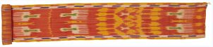 艾德萊斯綢收集于新疆庫爾勒地區,大面積的紅色之中,點綴著象征維吾爾族生存環境的黃色,以及伊斯蘭教崇尚的綠色和象征著天空的藍色。木梳紋、石榴紋、龕座紋等紋樣呈條狀規則排列,多種色彩拼合出強烈的視覺效果,洋溢著跳蕩激昂的韻律和熱情似火的西域風情。
