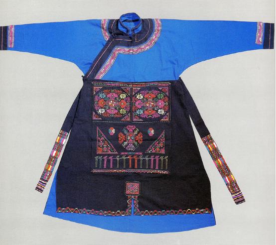 羌族婦女與男子衣服最大的不同之處是領(lǐng)邊、袖口、腰帶和鞋子上常挑繡有幾何花紋圖案,衣領(lǐng)上鑲有一排小的梅花形圖案銀飾。挑繡的圖案多反映現(xiàn)實生活中的自然景象,如植物中的牡丹、梅花,動物中的喜鵲、蝴蝶、羊等。所挑繡之景物,無不栩栩如生,內(nèi)容多含吉祥如意和對幸福生活的憧憬和渴望。