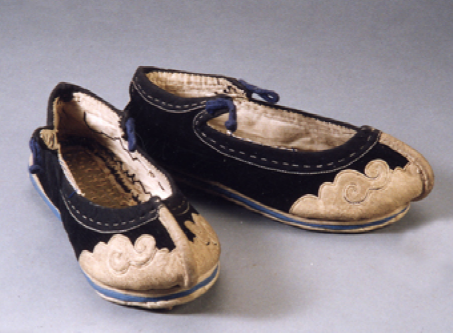 一般來說,一套傳統(tǒng)羌族服飾包括長衫、坎肩、褲子、腰帶、圍腰、裹肚、帽子、鞋子等。一件羊皮坎肩需要兩張羊皮,制作時將羊皮浸泡在草木灰中發(fā)酵,用木銼子除去腐肉、油污,直至羊皮光滑后再縫制。羊皮坎肩四季均可穿,有“羊皮褂子兩面穿,天晴下雨不離肩”的俗語。坎肩無領(lǐng)、無袖、無扣,四周露出羊毛,晴天毛向內(nèi)穿,雨天毛向外穿,可作墊背,負(fù)重等,也可防寒、避雨;圍腰屬于婦女特有,有半襟和滿襟兩種,多用深藍(lán)色或黑色布料。半襟圍腰略成長方形,長約70厘米、寬約60厘米,圖案完全對稱。圍腰上的包袋是重點裝飾部分。滿襟圍腰上窄下寬,呈“凸”字型,一般長為90厘米、底寬74厘米、胸寬20厘米,袋包多為一個大包或兩個相連的小包,位于圍腰中心,圍腰上布滿各種圖案,有團(tuán)花、火盆花、升子印、窗子格、燈籠須。這些復(fù)雜繁多、結(jié)構(gòu)巧妙的羌繡工藝,具有濃厚的羌族特色;羌族有草鞋這種日常鞋子,也有“云云鞋”。云云鞋的鞋尖微翹,貌似小船,鞋底較厚,以各色布包邊,用麻線密納,增強了鞋子的耐磨性。鞋幫繡有各形的彩色云紋,水波或杜鵑花紋式樣,故名“云云鞋”,也稱“花鞋”。羌族姑娘常將自己親手制作的花鞋送給小伙子,當(dāng)作定情信物。現(xiàn)在,羌族人將云云鞋當(dāng)作節(jié)日的盛裝,只有在重大節(jié)日時才穿。