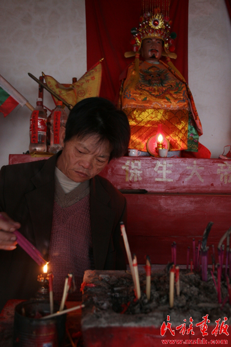 兩年來,作為保生大帝廟守廟人,江云山早上起來最重要的事情就是打開廟門,給諸神上香,敬茶。除了保生大帝神外,廟里還供奉有關公和文昌君。人們一般向關公神祈求發財,向文昌君神祈求兒女考上大學,早日成才。江云山說,只要真心信奉,人們來年各方面的愿望都會得到神靈的保佑。