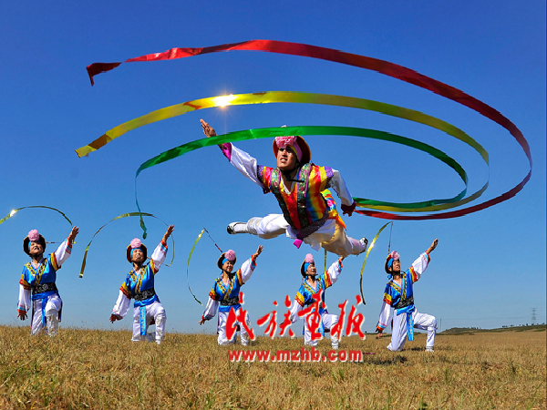 你可別小瞧了這拖著長長“象尾”的“象帽”,要想把它們成功地甩起來,那需要高超的技巧,未經訓練的人是無論如何也玩兒不轉的。早在1988年,延邊州汪清縣百草溝鎮就被文化部命名為“中國朝鮮族象帽舞之鄉”。在那里,會跳象帽舞的農民成百上千,他們扛著鋤頭是一群普普通通的農民,甩起“象帽”就變成一個個技藝超群的演員!如今的象帽舞由農村“舞”到城市,從國內“甩”到國際,站到了更高的藝術舞臺上,為朝鮮族贏得了眾多的贊譽!