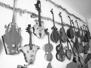 琴做出來后,很多人都來提意見,說什么的都有。是長是方,該圓該扁,讓何曉頗為躊躇。后來,何曉又做出了16把東布爾,把大家的建議都嘗試了一遍,自己卻依然不滿意。何曉說,早些年經濟條件不好,購置的材料都盡量精減,有的甚至用了三合板。由于這些琴做得太粗糙,樣式也不夠好,何曉一狠心,把這些琴都燒掉了。